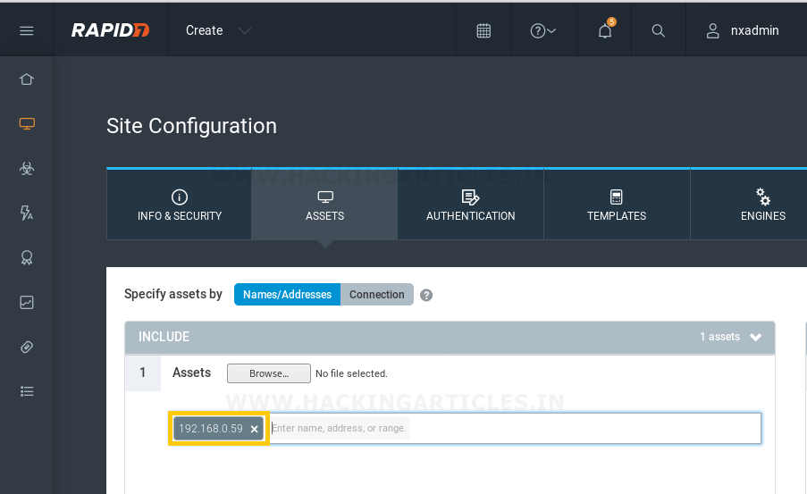 The section Exclude is used to exclude the IP from scanning. If we’re scanning the entire IP range and want to exclude some of the IPs from the scan, we just need to put them in the exclude assets section.