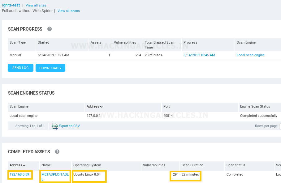 Now since we’ve completed all the required information to setup our site for a scan. To begin scanning, Click the Save and Scan button at the upper right corner of our Nexpose console panel.