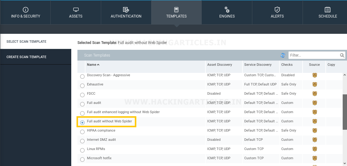 Afterwards, setup a particular Scan Template, as shown above, we’ve used the default Scan Template i.e. full Audit without Web Spider.