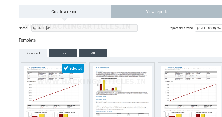 Now we can generate the new records in the Reports tab by simply giving it a title, selecting the scan along with the template and the format in which we want our reports to be in.