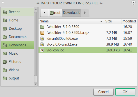 I have downloaded the VLC Icon. As you can see in the above image I am adding the vlc-icon.ico file as an icon.