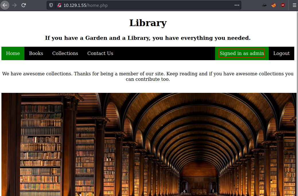 Now that we have created a user, we use the login page to get into the application. As the title suggests that it is a Library of some sort. It has a page for books where they have a collection of books on plants. Then images of flowers link to the respective PDF files There is a section of Collection where we can upload new books in the library. We tried uploading a bunch of stuff which results in a pop up thanking our submission. Finally, it has a Contact Us page with a feedback form.
