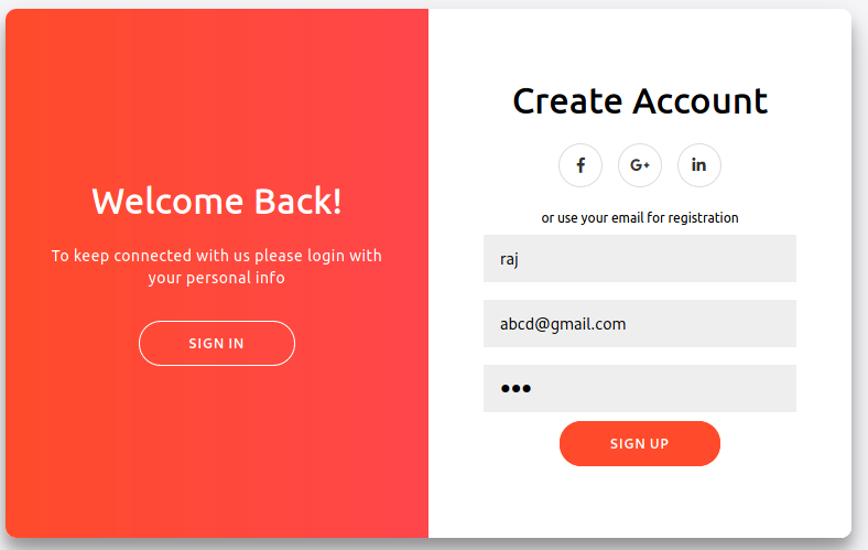 We filled the Sign-Up Form and created an account to login by the name of Raj.