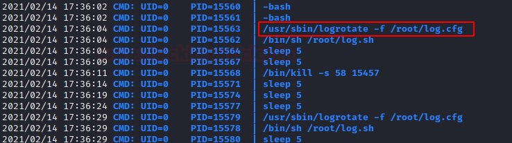 There was a bunch of stuff that was running periodically on the system. The one that took our attention was sleep and logrotate command getting executed every 5 seconds.