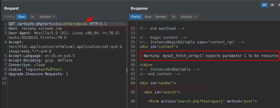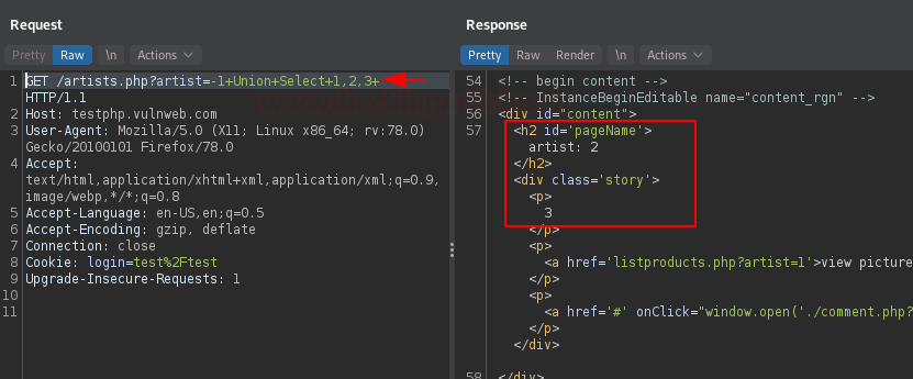 Let’s penetrate more inside using Union base injection and even we’ll pass wrong input into the database by replacing artist=1 from artist=-1