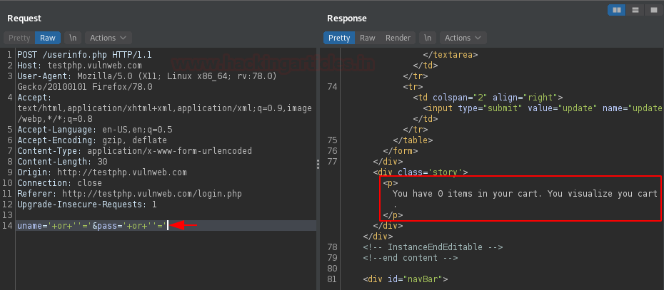 So, let’s exploit its injection points with the Burpsuite’s Hackbar.