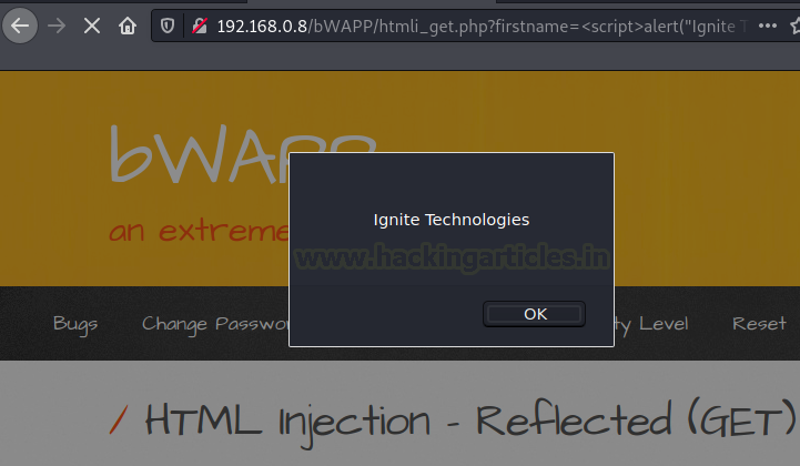 <script>alert(“Ignite Technologies”)</script>