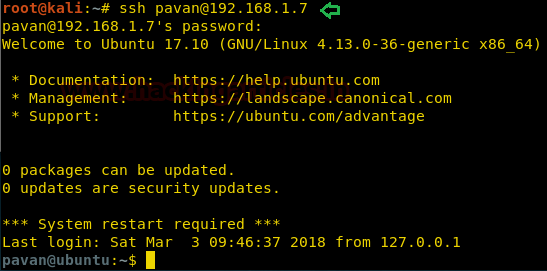 Lets first try to get the normal SSH shell. As you can see in the given screenshot we successfully get the ssh shell on the port 22 of the Server 192.168.1.7.