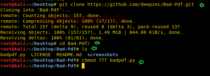 git clone https://github.com/deepzec/Bad-Pdf.git cd Bad.Pdf ls chmod 777 badpadf.py