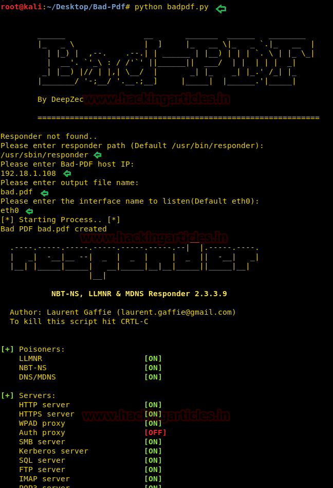Then it will create a malicious pdf file with name bad.pdf, now transfer this pdf file to your target.