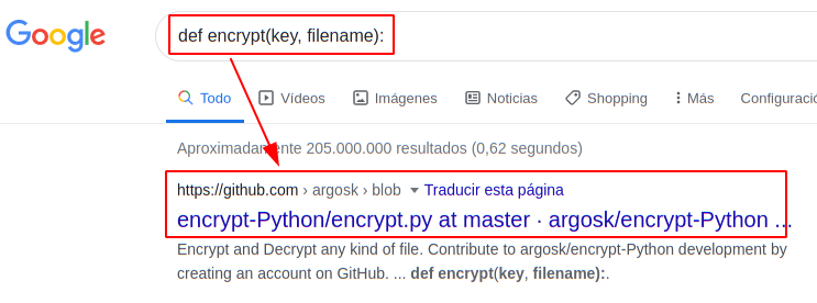 Here, we found the function “encrypt” in google and we found the complete python script.