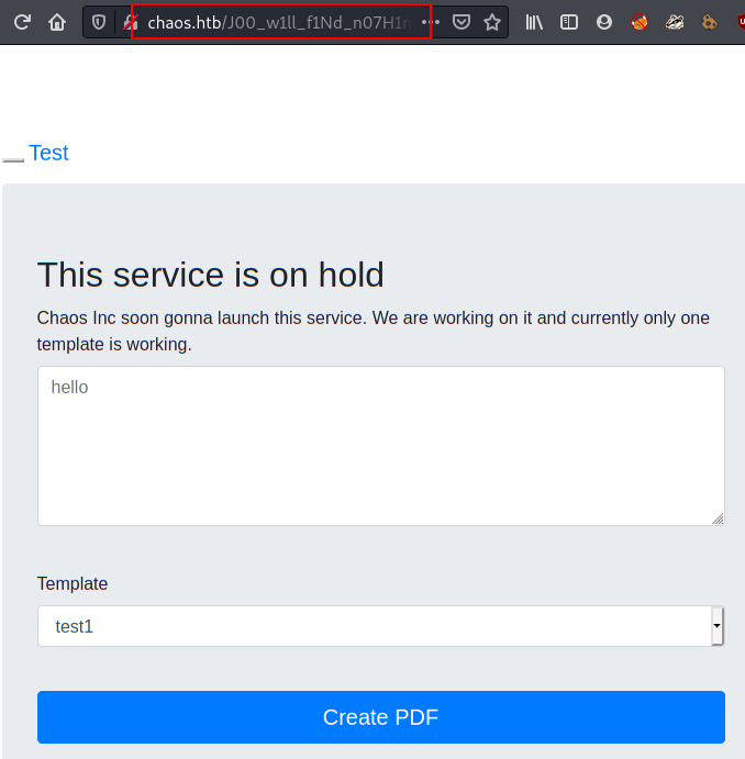 We visit the website, we found a form for creating PDF files. This leads us to believe that there may also be directories containing PDF files with confidential information.