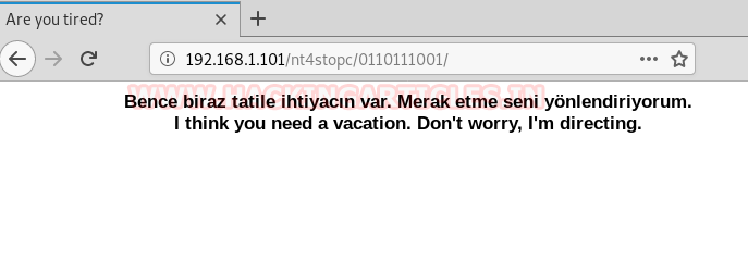 Once the above step is done, the page that opens will show a message saying “I think you need a vacation. Don’t worry, I’m directing” again both in English and Turkish. This page then redirects to a webpage showing turkey as a holiday spot as shown in the image below: