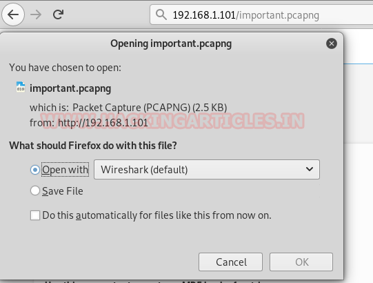 Now let us download the file to inspect it. To download the file simply add its name to URL and press Enter