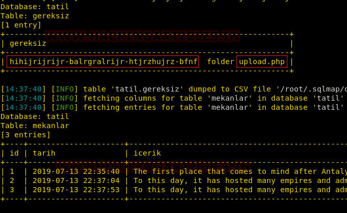 Executing the above command will provide the following result. And that’s how we got the database name i.e. tatil as shown in the image below: