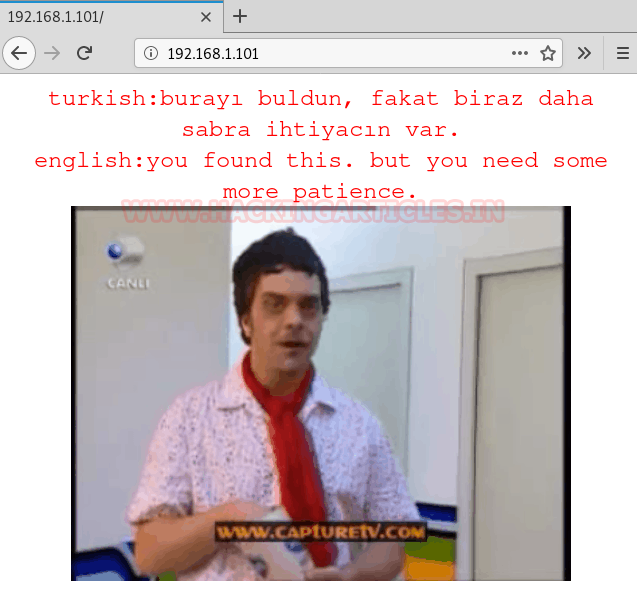 Upon opening the IP in the browser, it says “you have found this. But you need more patience” both in English and in Turkish which means we need to find more things. Therefore, further we used DirBuster and we had the following results: