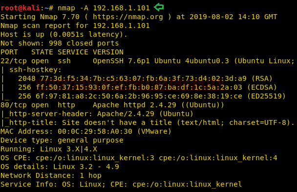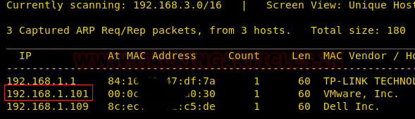 Let’s start with the scanning process. This target VM took the IP address of 192.168.1.101 automatically from our local Wi-Fi network.