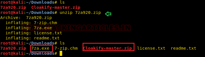 Now extract the 7za920.zip and you will get the 7za.exe file that we have to inject in the victim’s machine.