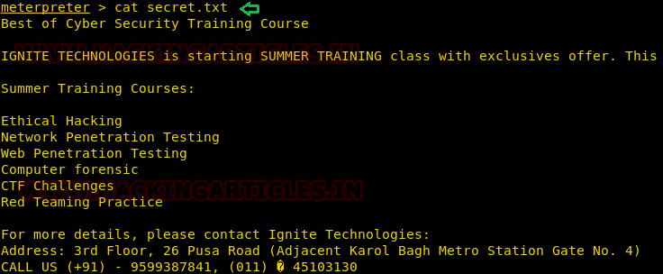 Let’s take an example now that we want to copy a text file “pwd.txt” from within the target system containing the login credentials of different machines in the network.