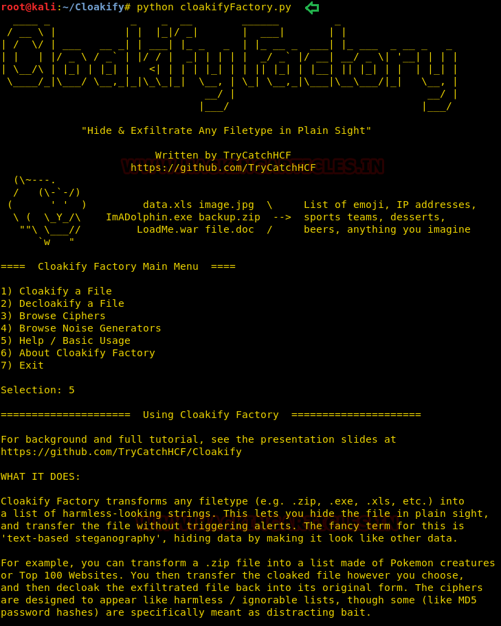 Conclusion: cloakify-factory could be very useful for exfiltrating data internally, as we saw it has many cipher scripts that are used on the data file, and hence it is a very effective tool for performing text-based steganography.