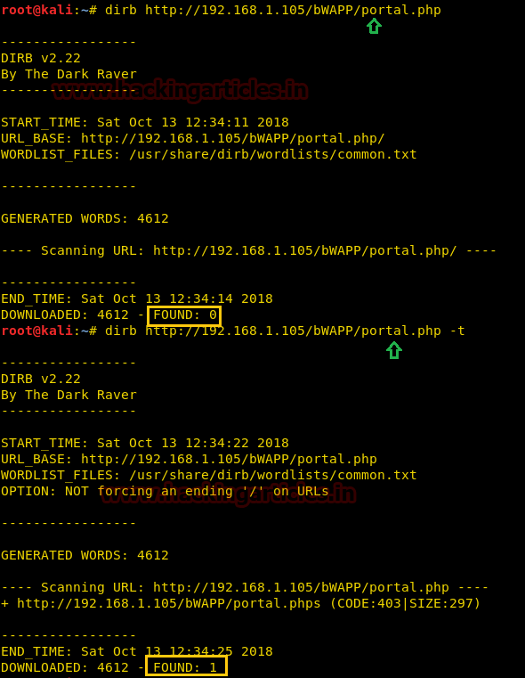 dirb http://192.168.1.105/bwapp/portal.php -t