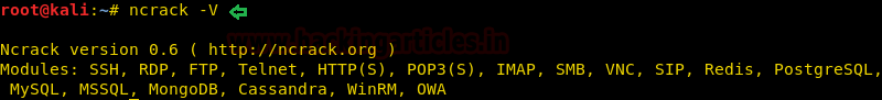 Ncrack can be started by typing “ncrack” in the terminal. This shows us all the different options the tool provides us.