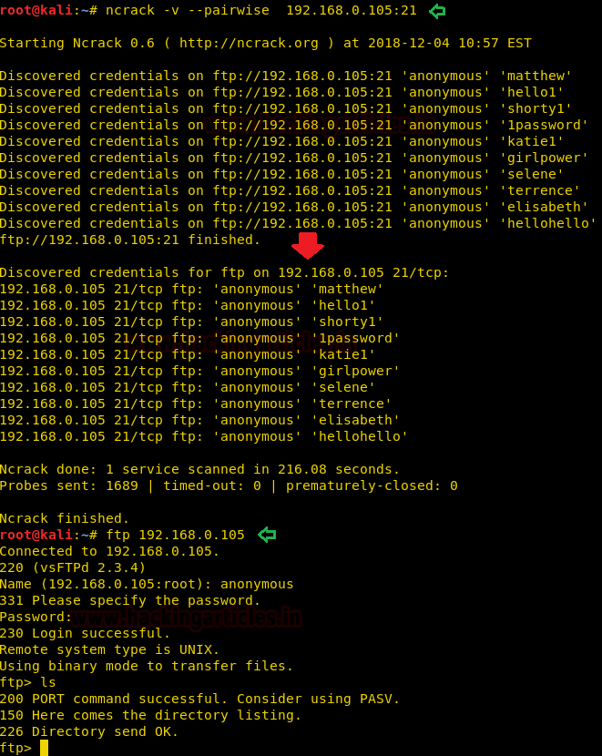 We have defined this attack as basic because at this phase we only know that port 21 is enabled for FTP service on the victim’s machine. So with the help of the following command, we will try to find out possible FTP login credential.