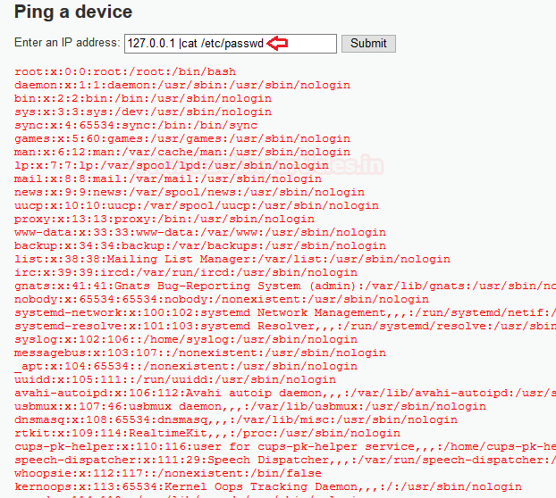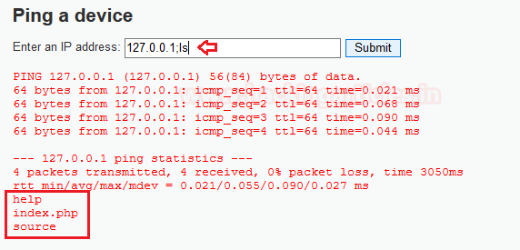 Now if an attacker injects an unwanted system command adding up with the basic ping command using some metacharacters. Thus the web-application pass it all to the server directly for execution, allowing the attacker to gain the complete access of the operating system, start or stop a particular service, view or delete any system file and even captures a remote shell.
