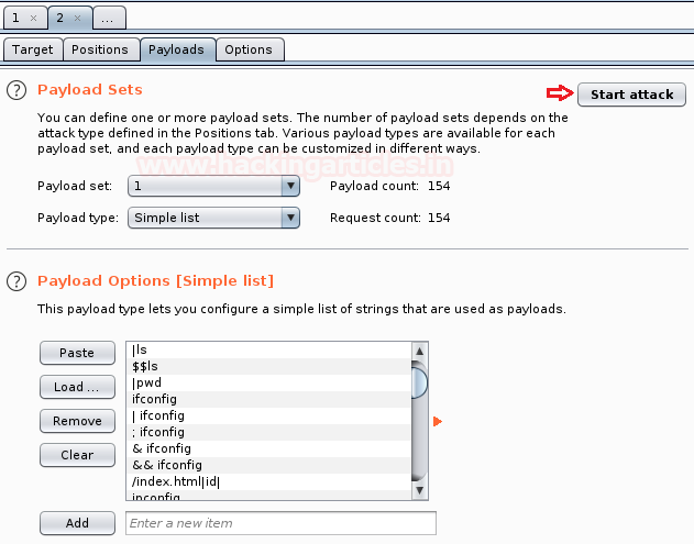 Time to inject our dictionary, now move to the Payload tab and click on the load button in order to load our dictionary file.