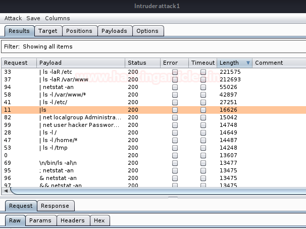 From the below image, you can see that as soon as I clicked over the 11th Request, I was able to detect the ls command running in the response tab.