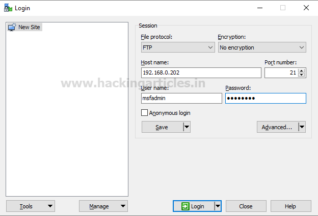 Let us now go to the client machine and try to connect the metasploitable server with FTP (File Transfer Protocol) client as shown in the below image