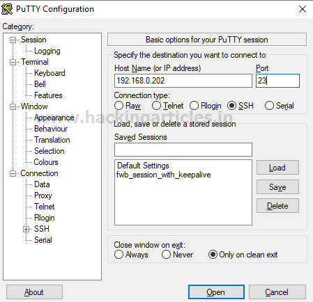 Then, from given below image you can perceive that now we are trying to connect with metasploitable server (192.168.0.202) through telnet via port 23 using putty. it will prompt you for the user name and password, provide the necessary information.