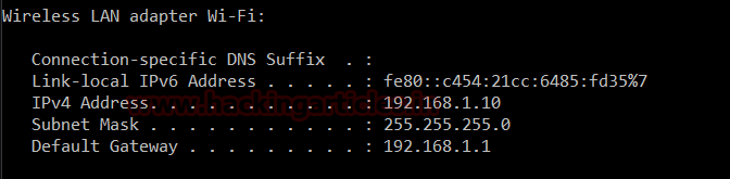 The IP (192.168.1.10) we will attack from is shown in the image shown below :