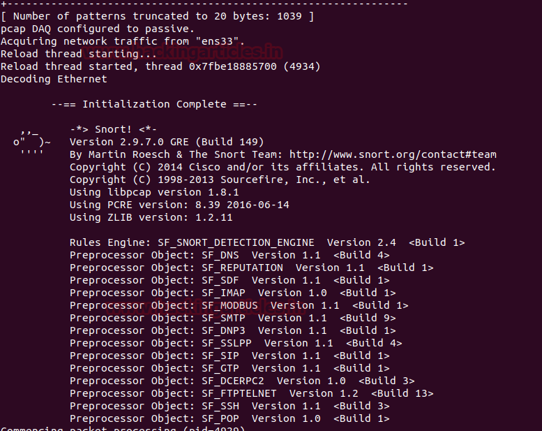 sudo snort -A console -i ens33 -c /etc/snort/snort.conf