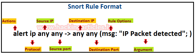 Snort offers its user to write their own rule for generating logs of Incoming/Outgoing network packets. Only they need to follow the snort rule format where packets must meet the threshold conditions. Always bear in mind that the snort rule can be written by combining two main parts “the Header” and “the Options” segment.