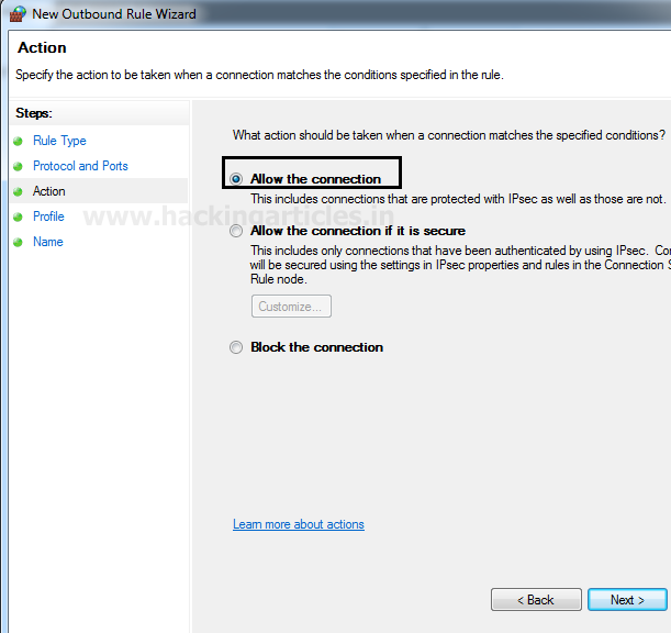 And this is phase changer step, enable “Allow the connection option” for all network i.e. domain, private and public. Give a suitable title to rule name for your awareness.