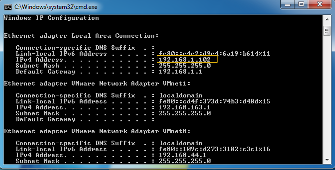 - Windows operating system (Workstation machine) holding IP: 192.168.1.102