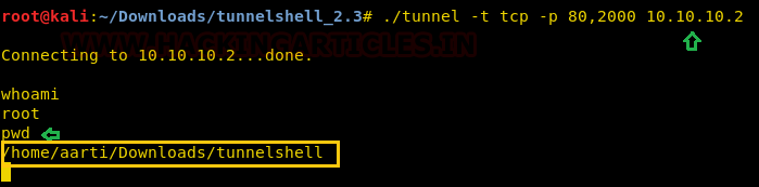 Now to connect with tunnelshell, we need to execute the following command on the server (Attacker’s machine). It will establish a covert channel for data exfiltration.