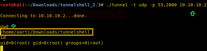It uses IPv4 fragmented packets to encapsulate data. When some routers and firewalls (like Cisco routers and default Linux installation) receives fragmented packets without headers for the fourth layer, they permit pass it even if they have a rule that denies it. As you can observe that it is successfully connected to 10.10.10.2 and we are to access the shell of the victim’s machine.