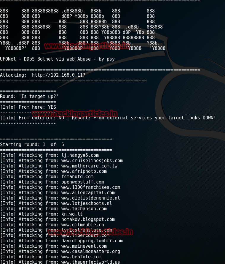 Set the target to your target URL or your target IP and set the number of rounds as per your need and click on start for the attack.