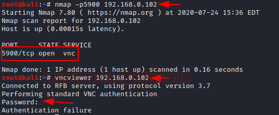 nmap -p5900 <ip address> vncviewer 192.168.0.102