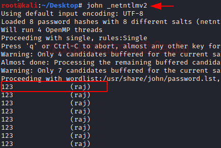 And here you see that the password Here you can see that the hash file generated on the desktop can be decrypted using
