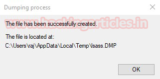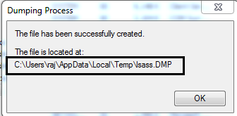 You will get the “lsass.DMP” file inside the /Temp directory of the user account directory under /AppData/local