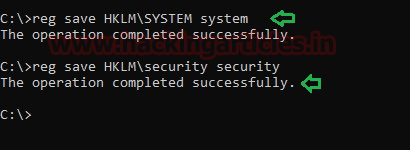 reg save HKLM\SYSTEM system reg save HKLM\security security