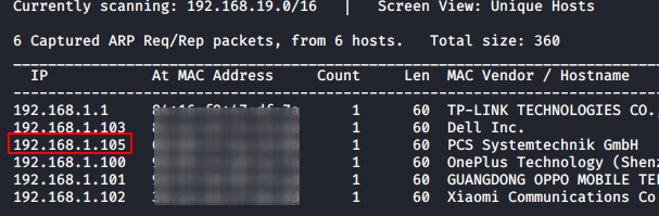 To Attack any machine, we need to find the IP Address of the machine. This can be done using the netdiscover command. To find the IP Address, we need to co-relate the MAC Address of the machine that can be obtained from the Virtual Machine Configuration Setting. The IP Address of the machine was found to be 192.168.1.105.