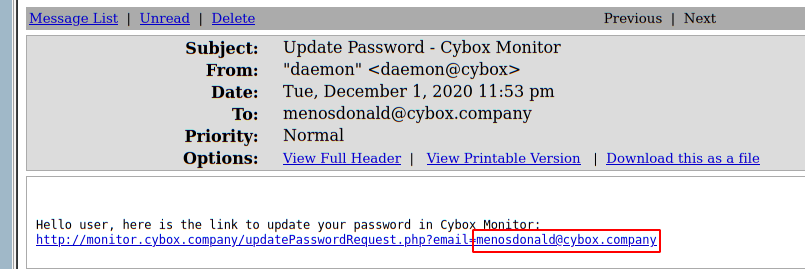 We tried brute force with the user “admin@cybox.company” and better-known password dictionaries, but no luck.