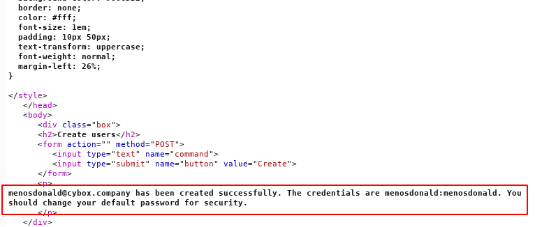 I didn’t find the way to authenticate with the user “cybox“, so I authenticated with mine (menosdonald).