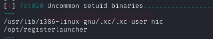 After several enumeration tests, we run the “lse.sh” tool and find this uncommon binary setuid that catches our attention.